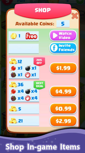 🍭- Play anywhere, online and offline. You can easily sync this game between any smart phone or tablet devices and access the full game features when connected to the internet.