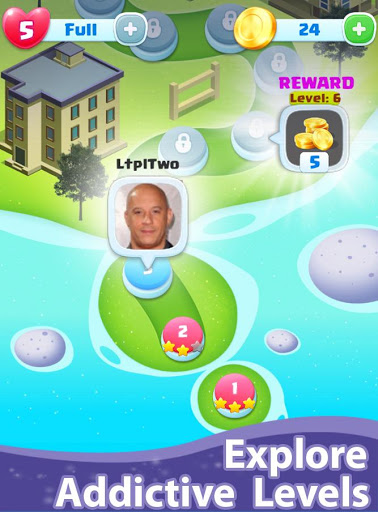 🍭- Create as many special celebrities or combos as you can by matching four or more same celebrities in a row or column to achieve highest score and overcome the challenging levels of this puzzle adventure.