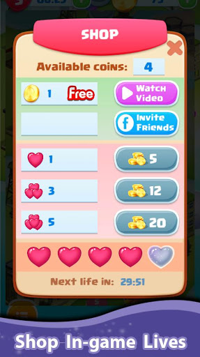 🍭- Save your progress with your Facebook account once when connected to the internet, your game will be saved automatically after each level.