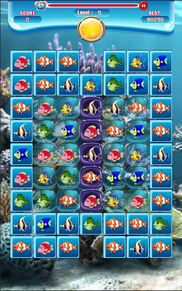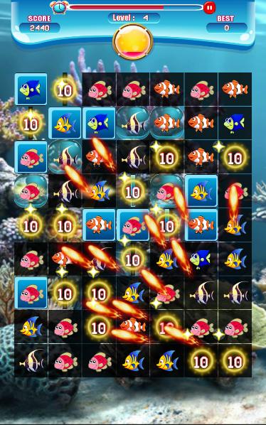 2: Match the fish until the board transparency, the Match-3 Fish will appear.