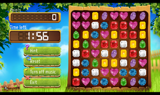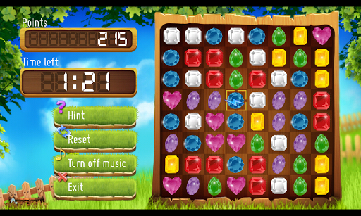 The aim of this logic game is to collect vertically or horizontally 3 equal gems or jewels. Moving pieces in different directions – left-right and up-down match 3 or more gems and it will disappear and give you points. The more jewels you match in 1 move the more points you will get. You will have 2 minutes to gain maximum points, or play campaign with a lot of levels