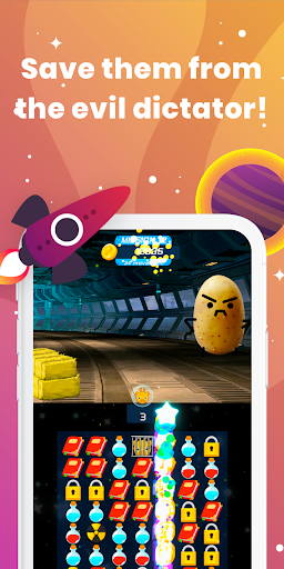 In this free Match 3 puzzle game, you’ll embark on an adventure across the galaxy to rescue animals from the evil Potato Posse. With cute graphics, animations and sounds, this is a free match puzzle 3 game you’ll struggle to put down!