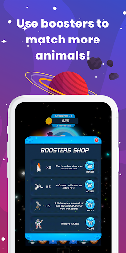 The controls are simple – just swipe to swap two animals. Match 3 animals in a row to rescue them from the board. If you’re a matching master and can match more than 3 at the same time, you’ll create powerful boosters. Launchers and cruisers help you clear entire rows and columns of animals, while the telescope clears all animals of one type. Use your match 3 boosters to achieve sky high scores.