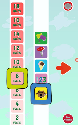 nine levels of difficulty (from 2 to 18 pairs of cards)