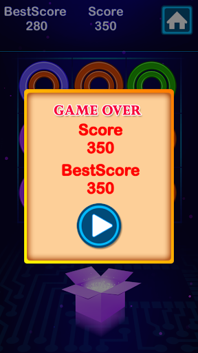 - Once you fill rings in a vertical or horizontal or diagonal line with same color, it will disappear and freeing up space for rings.