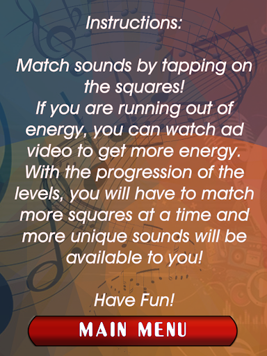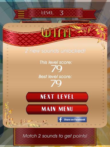 Enjoy unique matching game that will test both your visual and your musical memory! Win the game if you can! Unlock unique sounds with a levels progression, get more complex tasks, and finally try winning the game by beating level 60!