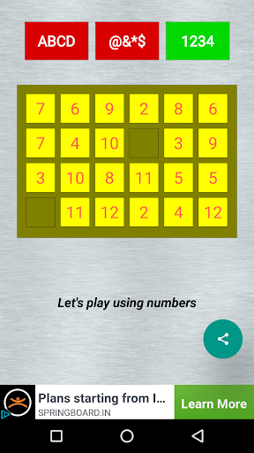 Match Up is a great interesting puzzle game where in the user has to remember the position of particular character and find a match for it. In this first version one can play