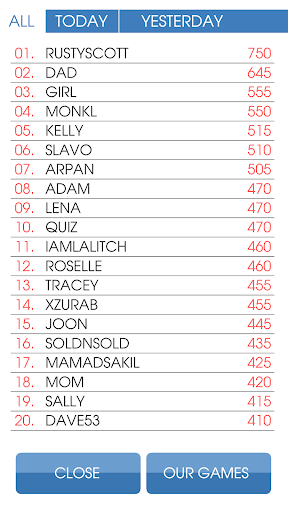 * Global and local leaderboards included - see your personal bests and points of other people from all around the world