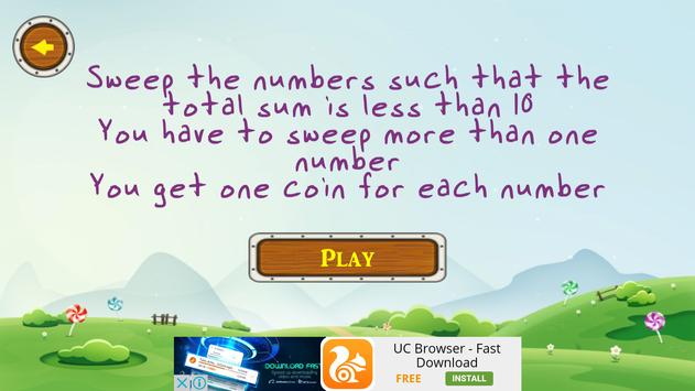 7. sweeping numbers : sweep numbers horizontally, vertically or diagonally in the board that have a total value less than a certain number