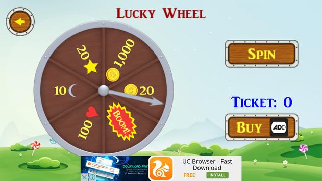 4. lucky wheel : spin the wheel to get prizes, can be hearts, moons, stars, coins or bomb