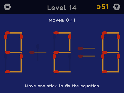 But that mathematical equation is not correct, and your friend challenge you to fix the equation by moving just one or two of the matchsticks.