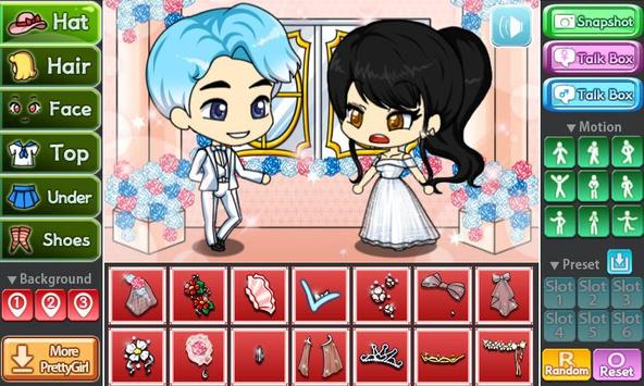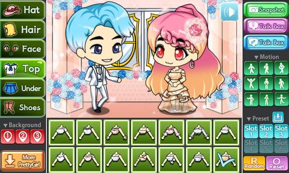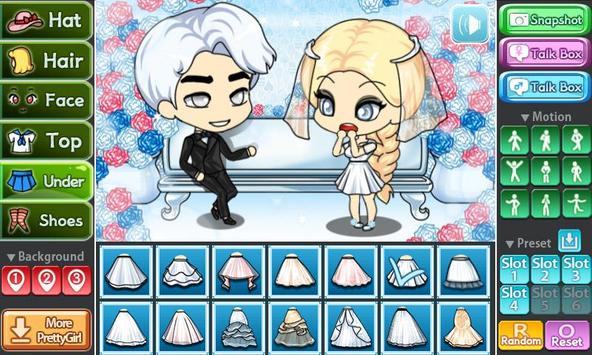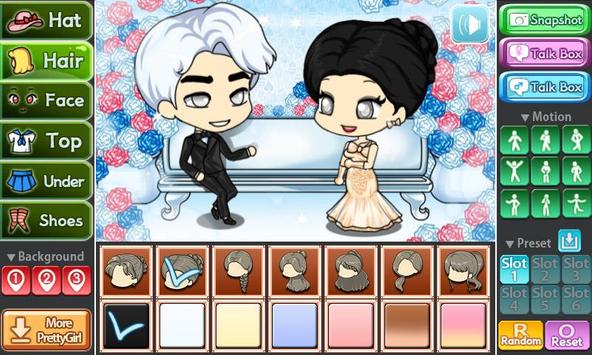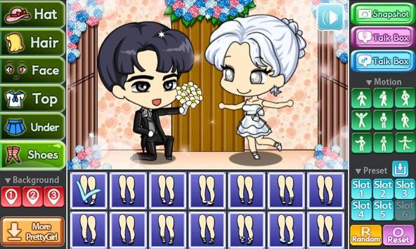 You can change the background, 9 poses and motions, you can also store your Pretty Girl in 6 slots.