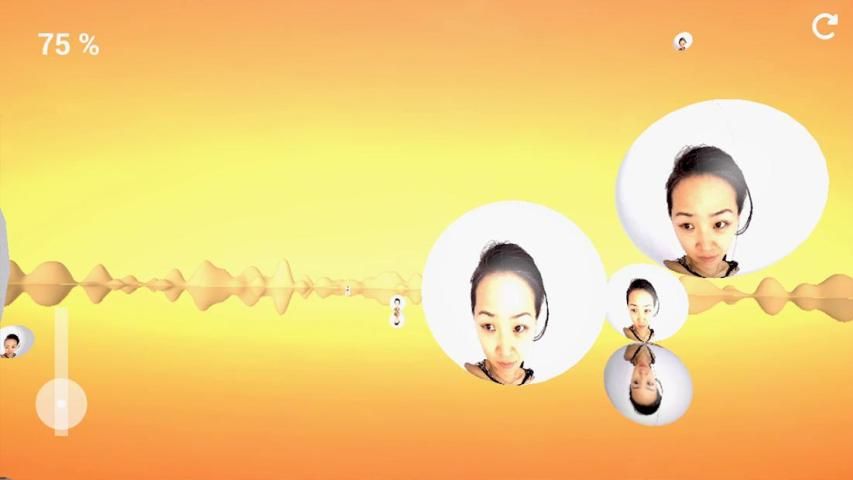 Between each level your live video appears for a short time, projected a thousand times all over the world. It's just you everywhere. Now you are the superstar and can share this magical moment with others.