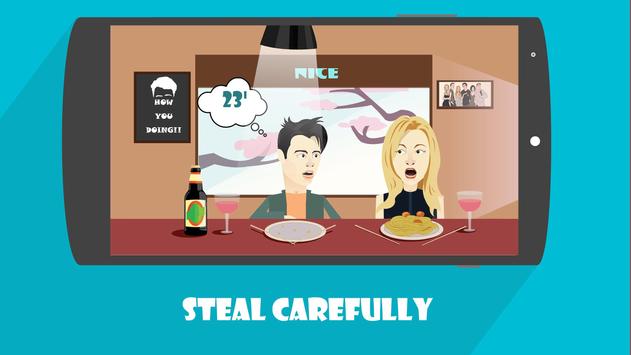 Enjoy the fun filled mischief in this simple tap based game "Meal Steal". Steal (tap) your partner's meal while she is looking away and stop stealing the moment she looks at you. The more meal you steal the more points your score. If you get caught then you are in some messy trouble.