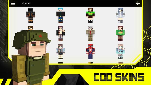 In addition to the Call of Duty card, in our application you can find skins for minecraft pe. The catalog includes: popular skins, noob skins, horror skins, angels, school skins, superheroes, military skins, halloween skins, vampires, herobrine skins, camouflage skins, bendy, animatronics, block skins, creepypasta, children's skins, cartoon and anime skins , skins for boys and skins for girls, and much more. All skins in minecraft are suitable for various versions in Minecraft PE, so you can not worry about this.