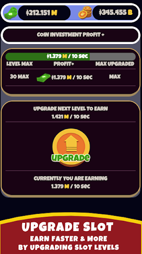 - Invest your coins to boost up cash earning more faster and become tycoon in short peroid of time.