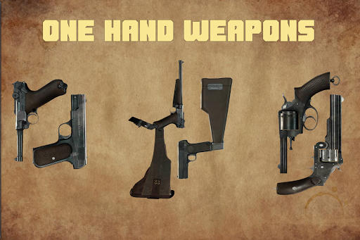 - About 100 weapons (pistols, revolvers, carbines, machine guns, rifles, grenades, bombs, melee weapons, etc. ...)