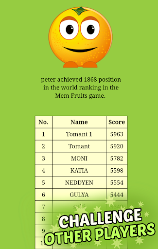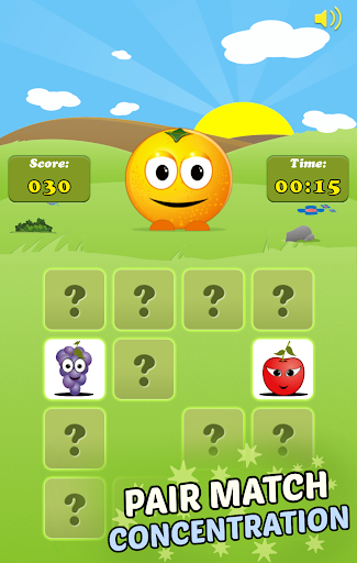 How good is your memory and concentration? Would you like to play game which improve your memory, concentration and the ability of your brain? Mem Fruits is a match up pair game for all ages - play alone or with your children. Rules are simple: find a pair of identical animated fruits cards and beat your score (time) records. The faster you find the card pairs, the more points you earn. What distinguishes our game from other this kind of games is the graphics (each image appearing in the game is animated) and sound effects - we really encourage you to turn on the sound. For your convenience, the sound is turned off by default - you can safely play our game during a boring lecture or meeting. Find pair of fruits to improve your memory and concentration!