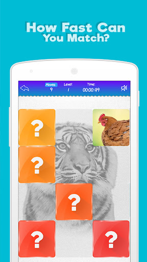 Match Game: Animals is based on the classic board game of matching cards with pictures of animals. Match game: Animals improves logical thinking and helps to carry out memory training and concentration abilities. The sounds of animals add variety to the game, encourage you to explore the next stages and identify new animals. Check how quickly you can match all the cards, improve your reaction, speed and concentration. Match game is a great way to de-stress. Relax and calm your nerves.