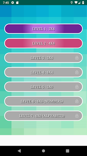 In this memory game we have 7 different levels that includes Birds, Fruits, Vehicles, Animals, Emojis, Numbers and Alphabets matching.