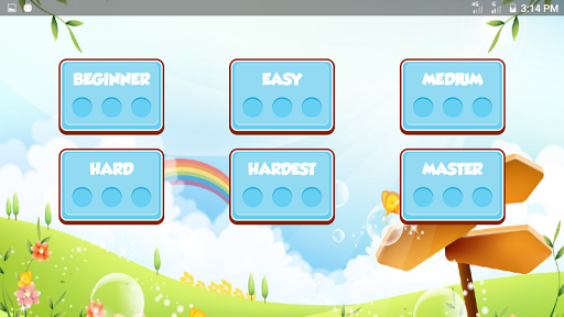 There are 6 game modes (Beginner, Easy, Medium, Hard, Hardest and Master) levels which more goes more difficult. a game for everyone