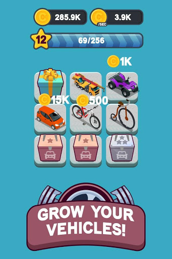 This game gives you only one addictive goal: Experience and levels. The higher levels you are on, the more space you will unlock. Higher Levels in the game will give you more spots to merge. In Merge Cars and Vehicles, we give you an opportunity to merge and build cars and vehicles.