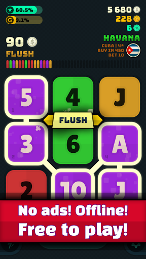 This is a brand new and original Merge Poker Game. It's based on an American Poker game rules, but the way how to grab a win is new. Merge Poker is free and offline game - no internet required. Game is without ads (advertisements).
