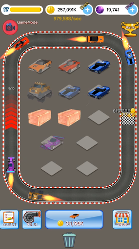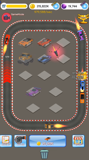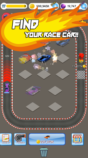 Buy, merge and manage your race-car so you can make them fly to earn money!