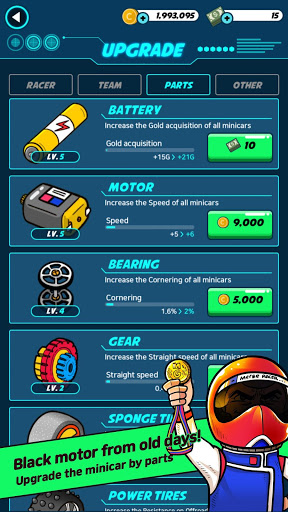 Upgrade parts of your minicar and their partners; keep customizing until you have the fastest micro machine on the asphalt. Burn that rubber!