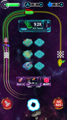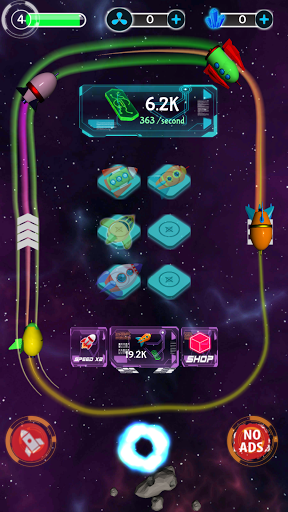 Build your empire and become the tycoon of the galaxy. Buy, merge, manage your rockets and upgrade them. Each level of spaceships earn more coins and more speed. Use strategy to reach your goal faster and enjoy the trip.