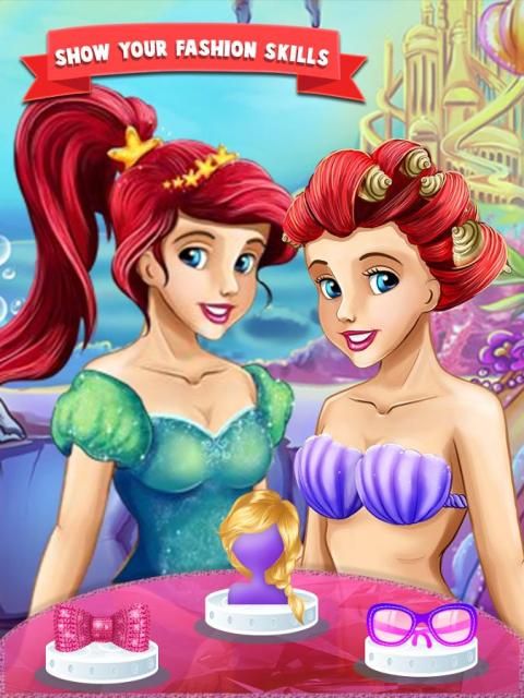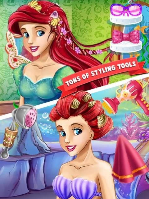 Mermaid Beauty Hair Salon game is a great game that will delight any hair stylist or beauty salon enthusiast. This Princess Ariel hair salon game for girls allows you to easily prepare and wash your Ariel Princess hair ready for it to be styled. You can mix and match the different colors of hair and cut her hair to the style you think would look best on her. You can even curl or straighten your Mermaid Princess's hair and add all sorts of accessories which will make her look absolutely beautiful.