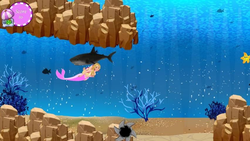 Cute and lovely mermaid escapes shark attacks. Please help beautiful mermaid. Try to escape shark attack and collect all gifts with mermaid barbie. Be careful game speed increase each passing seconds.