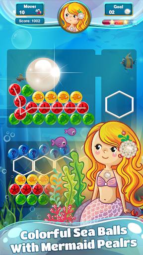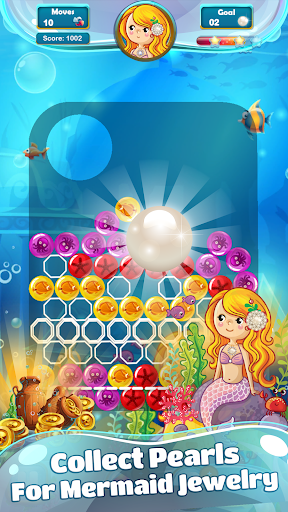 Mermaid Pearl - Match 3 is a thrilling puzzle game involving popular, addictive match-3 gameplay. It requires you to match 3 or more bubbles of same colors to pop, allowing room for the pearl to fall down (or lift-up in water levels) to reach the dotted line for a win. This way, you help the mermaid get a pearl for her hair or neck jewelry.