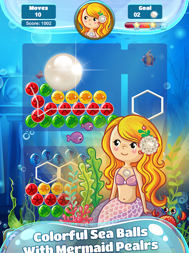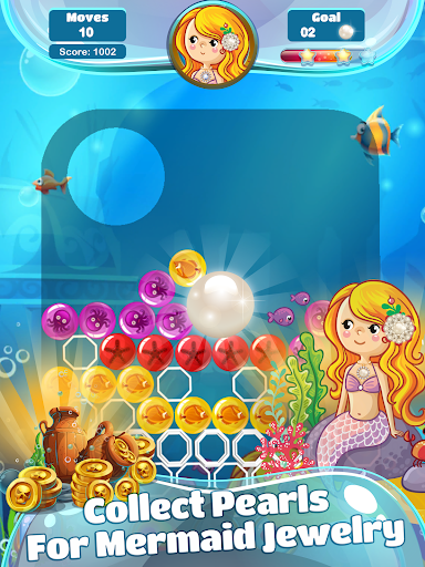 Mermaid Pearl Match 3 is an exciting & adventurous match-3 game that’s developed for everyone who is a fan of the mermaid, pearls, match 3 puzzle games, and looking for a great time killer. The mermaid game has stimulating and entertaining levels with the well-polished, ocean-themed graphics, colorful sea-animals-filled bubbles, beautiful pearls, and amusingly crunching sound effects. Sea creatures like starfish, octopus, sea horse, fish, and turtle are used to create bubbles of different colors to make the game interesting as you practice your color matching to have fun and help the mermaid get pearls. The gameplay is extremely simple and straightforward, however, you’ll have to express your best strategic moves in order to get through the levels.