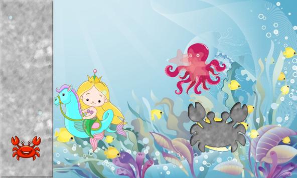 -touch the screen and drag the mermaid princess and the fishes on the right place