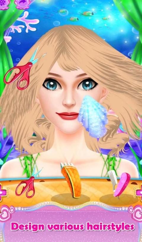 The beautiful mermaid is at the salon for the first time in her life. Help her with all the different makeover activities at your mermaid special salon. Start with the face makeover activities and use all the different cosmetics and creams. Make her face glow beautifully like a moon. Clean her hair with the shampoo and give different style to her hair. Do different hair designs and colors for her hair. Finally help her to choose the best and the most beautiful mermaid dress costume at your salon.