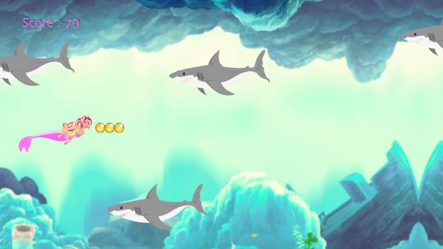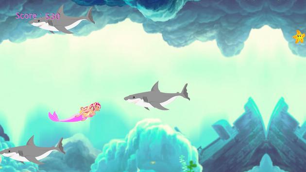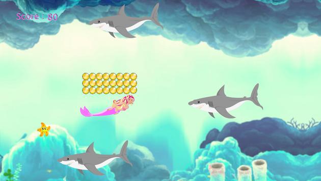 Mermaid swim with beautiful tale.Miss barbie swim and escape shark attack. Catch all coins and Quickly swim among the rocks.