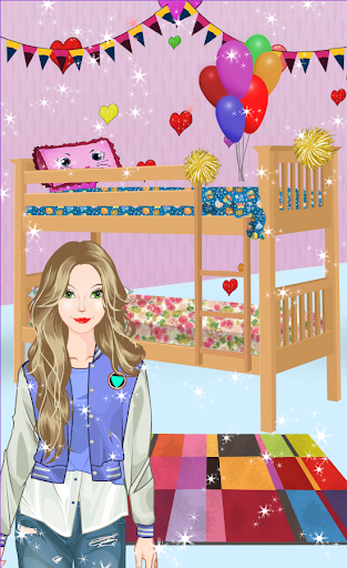 There are more stuff that can be changed in our decorating games for girls :, the blanket, the pillows, the toys - each girl has a favorite toy, isn't it ? You may even change the color of the walls, the carpet or the curtains. All you have to do is to choose your favorite color for all these room decoration objects and change them as you like. Do not forget the balloons or the cheerleader stuff which are very important for a college girl !