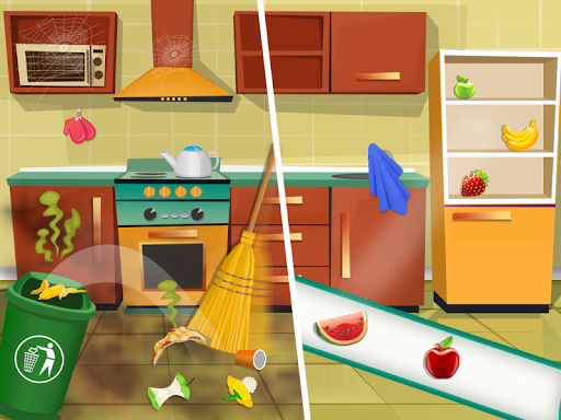 🏠 Garden Cleaning: Garden is dirty too! Let’s help to clean up garden by trash the garbage and dust into dustbin and throw dirty plants and adding fresh flowers , Fix Sliders and clean dirty car.