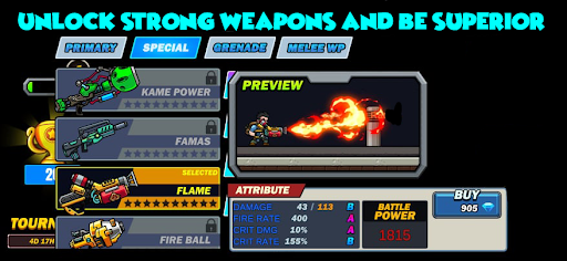 The game is all about intense multiplayer combat! Battle with up to 4 players online and win great prize every week by Competing other players.