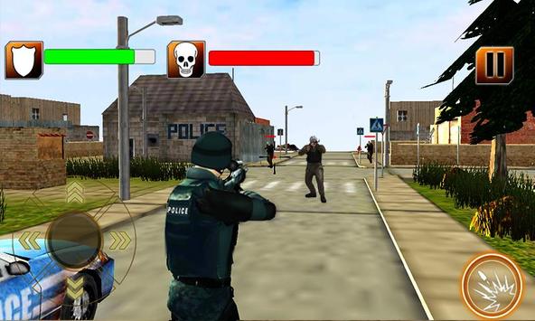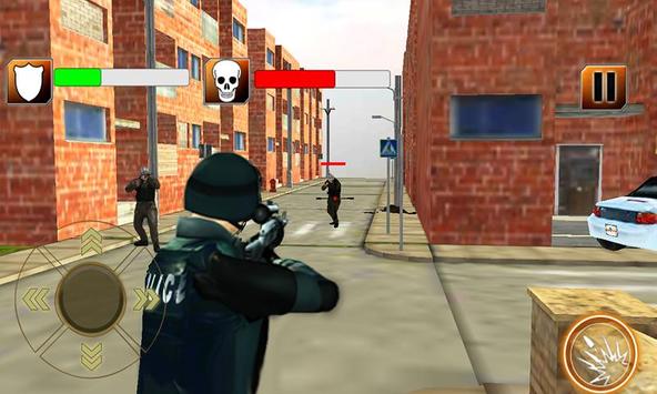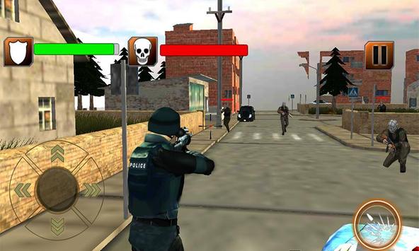 Traditional rivals: Police and the criminals are in front of each other. Police of the city is set to chase the crime and fight a war against the gangsters and kill them all to clean the city from hike of crime they have created. The city is in the state of siege; your mission is to clear the area by killing all criminals who has occupied a hospital building, a police station, residential area, gas filling station, and a commercial area.