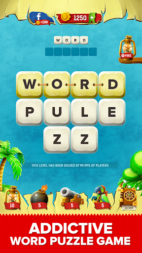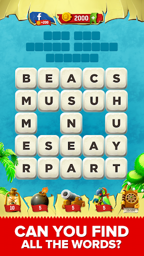Easy way to complete a level is to swipe your finger thru the letter tiles and to find the words from the level's topic. For collecting hidden words you will receive an additional reward! If you have any difficulties, our Pirate always has his talking parrot Harry, who knows all the words in the world. On the way to treasures you will find both simple levels, and levels where words belong to one topic.