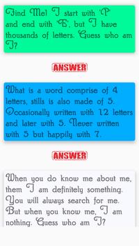 - Stuck? every riddle comes with Answer!