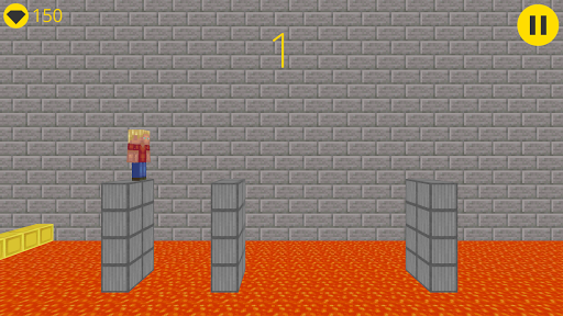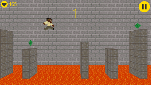Jump on the columns to move forward. Your goal - not to fall into the lava. Collect the emeralds to buy skins. Compete with your friends, setting new records. Perform achievement to get points.