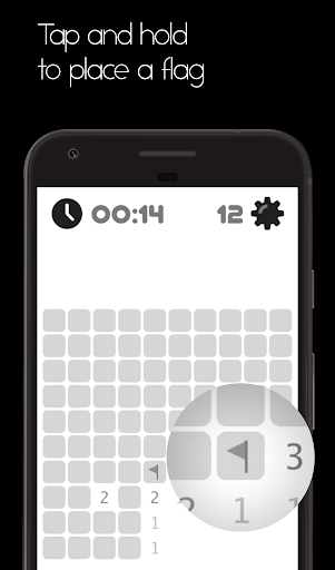 Use this information to deduce the contents of other squares, and you may either safely reveal each square or place a flag (tap and hold) on the square to mark a mine.