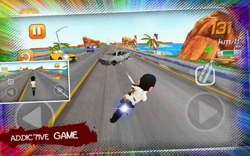 Speed is what an extreme motorbike rider needs to get adrenaline so play speed bike racing to achieve that level. Passing between cars in traffic is very dangerous but now you can do it without any injury playing this awesome game