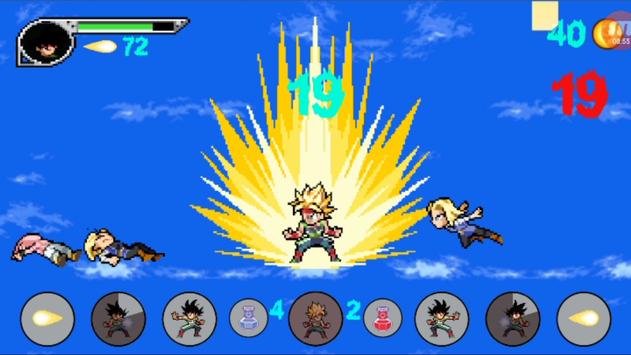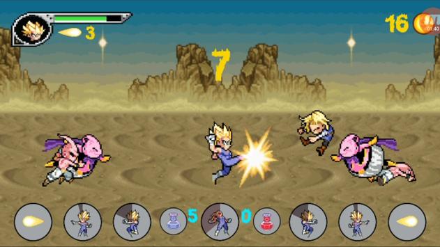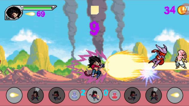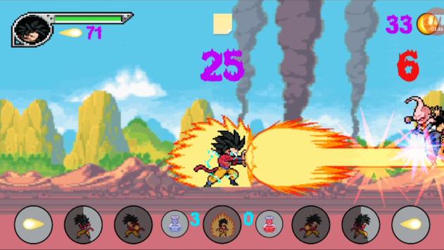 In this game, you have chance to become mini warrior in saiyan world, use cool skills like Ki Blast, Kamehameha, Bigbang attack, Dragon Recall … to kill enemy and get highest score. Each characters has individual special skills such as transform into ssj form, ssj blue form, kaioken attack to inscrease speed and attack damage ... Collect coins and unlock all of them to discover many beautiful and awesome skills.
