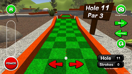 Mini Golf 3D Adventure is a free mini golf game that includes two 18 hole courses with a simple to use interface and great 3D graphics. Mini Golf 3D features normal mode, where you can compare your high scores with people around the world, and a practice mode where you can skip through the holes to practice as much as you want. There are also 3 different camera modes to cycle through including a behind-the-ball view, aerial view, and another view that continuously rotates around the hole. You can sign in to the Google Play Games Service to compete against friends on the global leader boards and earn achievements as well. The leader boards rank the best scores for the current day, week, and all time, as well as the total number of holes-in-one and rounds completed. If you enjoy mini golf, you'll love this relaxing, yet challenging mini golf game. See if you can set the high score and become the mini golf champion!