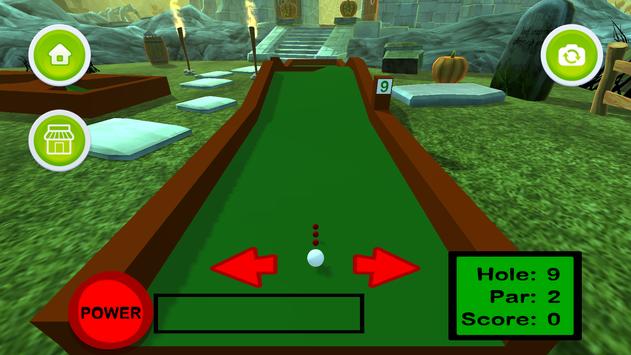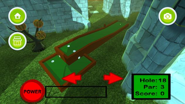 Mini Golf 3D Halloween is a free mini golf game that includes 18 holes of varying difficulty with a simple to use interface and great 3D graphics that takes place around a spooky graveyard and castle. Mini Golf 3D Halloween features normal mode and a practice mode where you can select an individual hole to practice as much as you want. There are also 3 different camera modes to cycle through including a behind-the-ball view, aerial view, and another view that continuously rotates around the hole. You can sign in to the Google Play Games Service to compete against friends on the global leader boards and earn achievements as well. The leader boards rank the best scores for the current day, week, and all time, as well as the total number of holes-in-one and rounds completed. If you enjoy mini golf, you'll love this relaxing, yet challenging mini golf game. See if you can set the high score and become the mini golf champion!