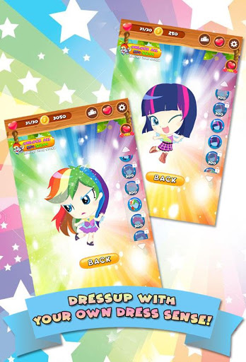 Mini Ponies rainbow pinkie is an extraordinary high school dress up game which allows you to mix and match outfits as you please. As a result, you will get millions of different ever after outfits.